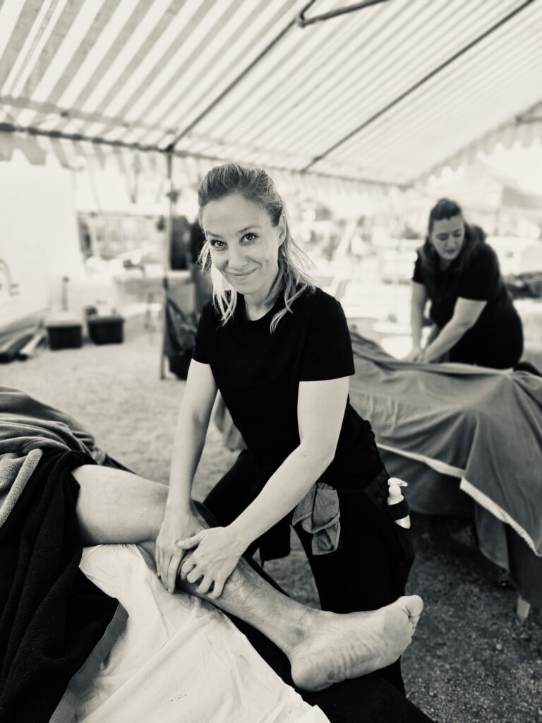 Ma mission sur des événements sportifs est tout simplement d’aider les athlètes a atteindre la ligne d’arrivée dans les meilleures conditions possibles. Pour cela, il est nécéssaire de savoir m’adapter selon les commodités et d’adapter les soins en fonction de l’état physique voir psychique de l’athlète en pré ou post compétition.Un vrai couteaux suisse ! Son luxe est de pouvoir se reposer et repartir de bon pied bon œil, le mien, son franchissement de la ligne d’arrivée !